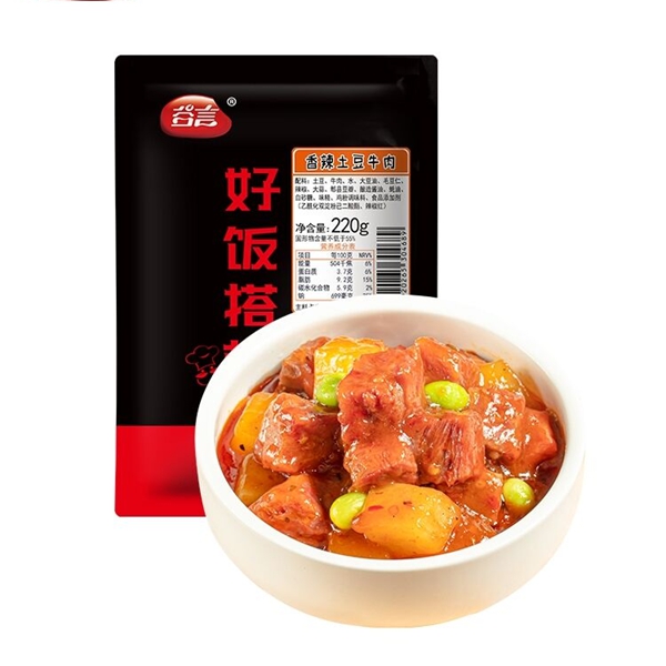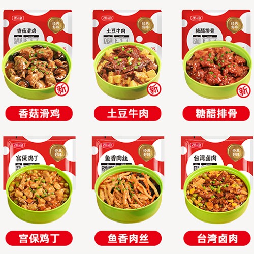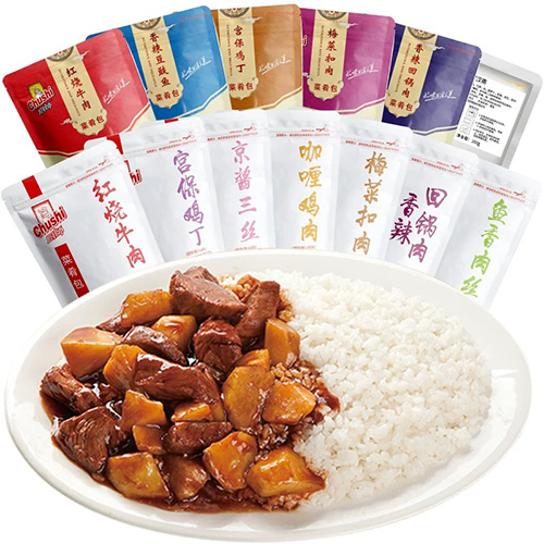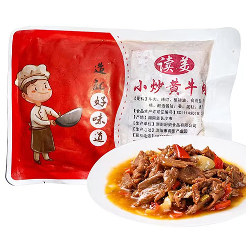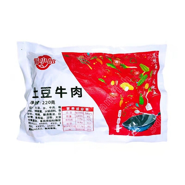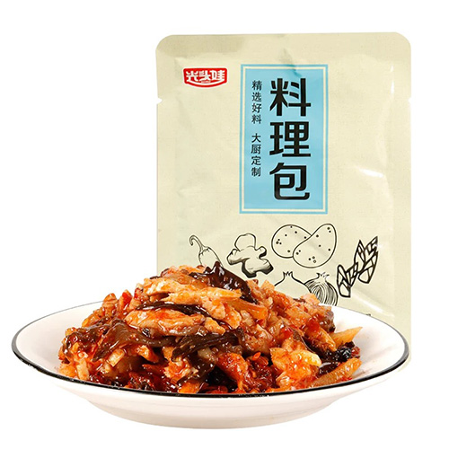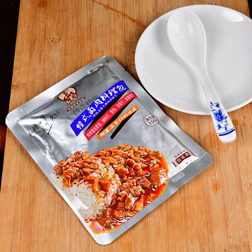 雞肉粒料理包給袋式包裝機的袋寬規(guī)格可自動調(diào)整、內(nèi)有自動潤滑系統(tǒng),用于包裝小炒黃牛肉、糖醋里脊、魚香肉絲、鹵肉料理包、牛肉料理包等